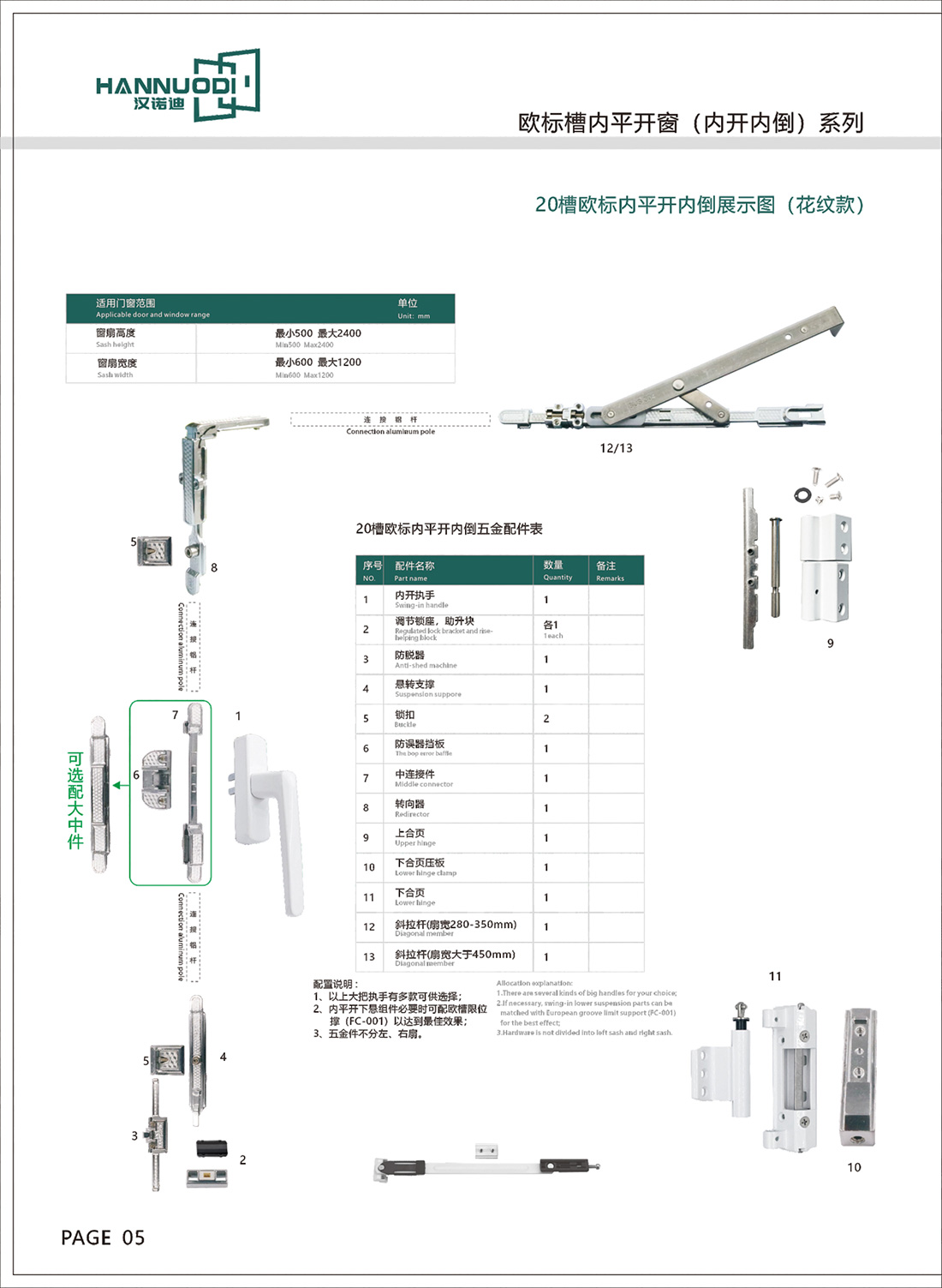 20槽欧标内平开内倒(花纹款):