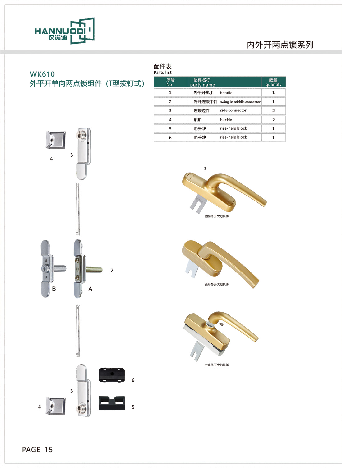 WK610外平开单向两点锁组件(T型拔钉式):