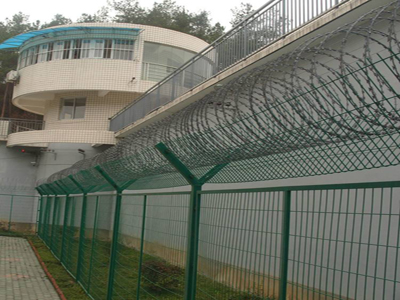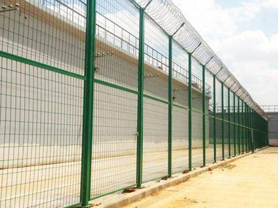 監獄護欄網又稱作“Y型安全防御護網”和機場護欄網通用,是由V型支架立柱,加強型焊接片網,安全防盜連接件和熱鍍鋅刀片刺籠組成強度和安全防御性級別很高。近年來,被廣泛應用在監獄,軍事基地等高安全場所。注:如果在監獄護欄網頂部加裝刀片刺絲、刀片刺繩后又很好的增強了安全防護性能。采用電鍍、熱鍍、噴塑、浸塑等防腐形式,具有很好的抗老化、抗曬、耐候等特點。其產品造型美觀、花色多樣,既起到圍欄作用,又起到美化作用。由于具有安全性高、防攀爬能力好,網片連接方式采用特制SBS緊扣件,有效防止人為的破壞性拆卸,橫向四道折彎加強筋,使網面強度顯著增加。