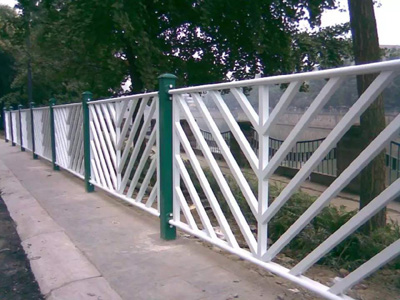 鐵藝道路護欄特點 1、美觀、實用的特點 2、本產品的安裝方便,適用于各種市政建筑、道路使用。 3、是目前道路隔離護欄之一 4、具有防腐、防老化、抗曬、耐候等特點 防腐形式: 有電鍍、熱鍍、噴塑、浸塑 具有防腐、抗曬、耐候等特點。 鐵藝道路護欄用途: 廣泛使用于市政工程,道路,工廠,開發區,園林廣場等場所的安全防護及裝飾美化.其產品造型美觀,而且牢固,防腐性好,是美化城市環境工程的產品.適合大批量標準生產,安裝快捷用工少,結構美觀,與環境協調性。